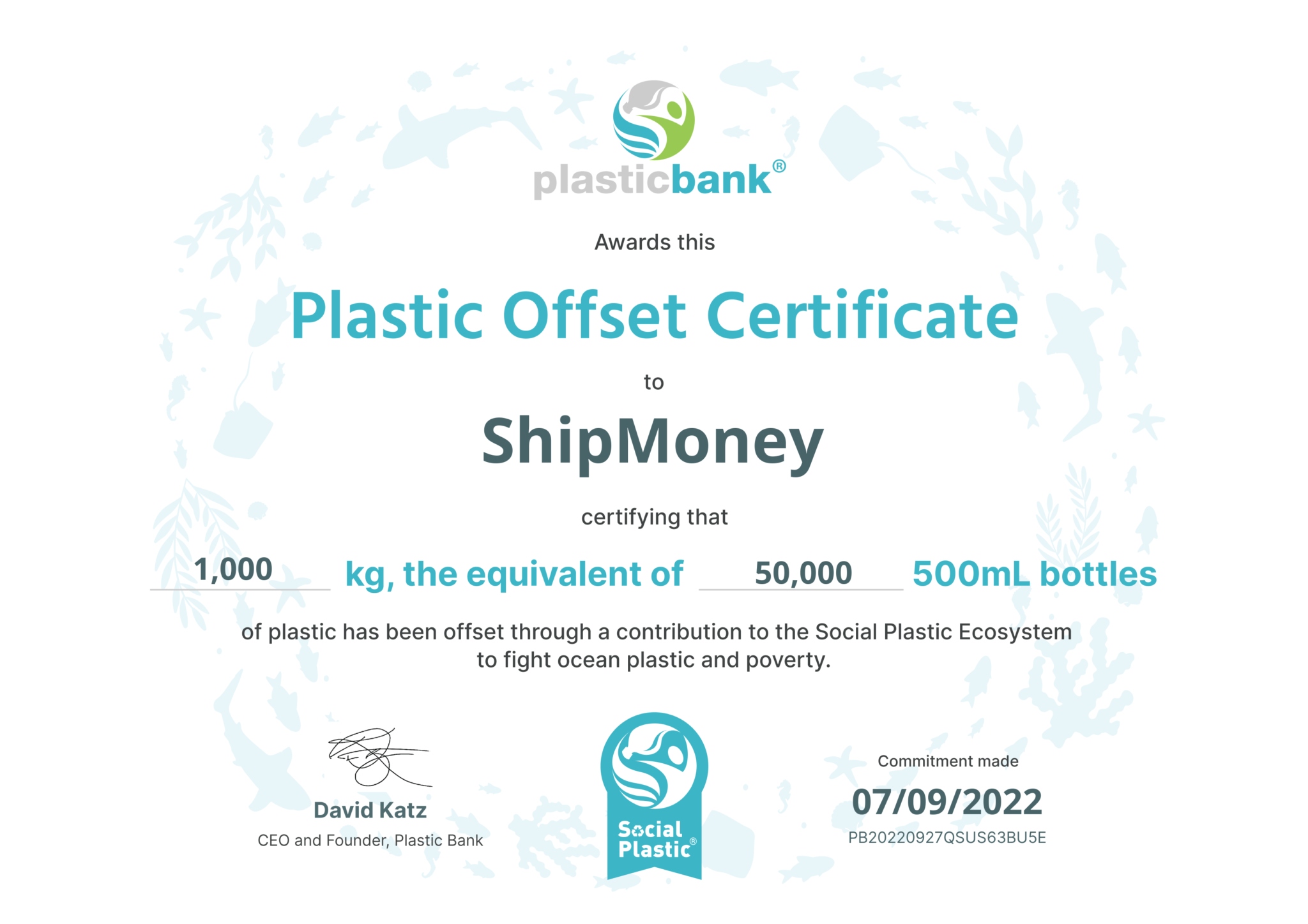 Along with other companies combatting ocean pollution, ShipMoney has become an official supporter of Plastic Bank®.